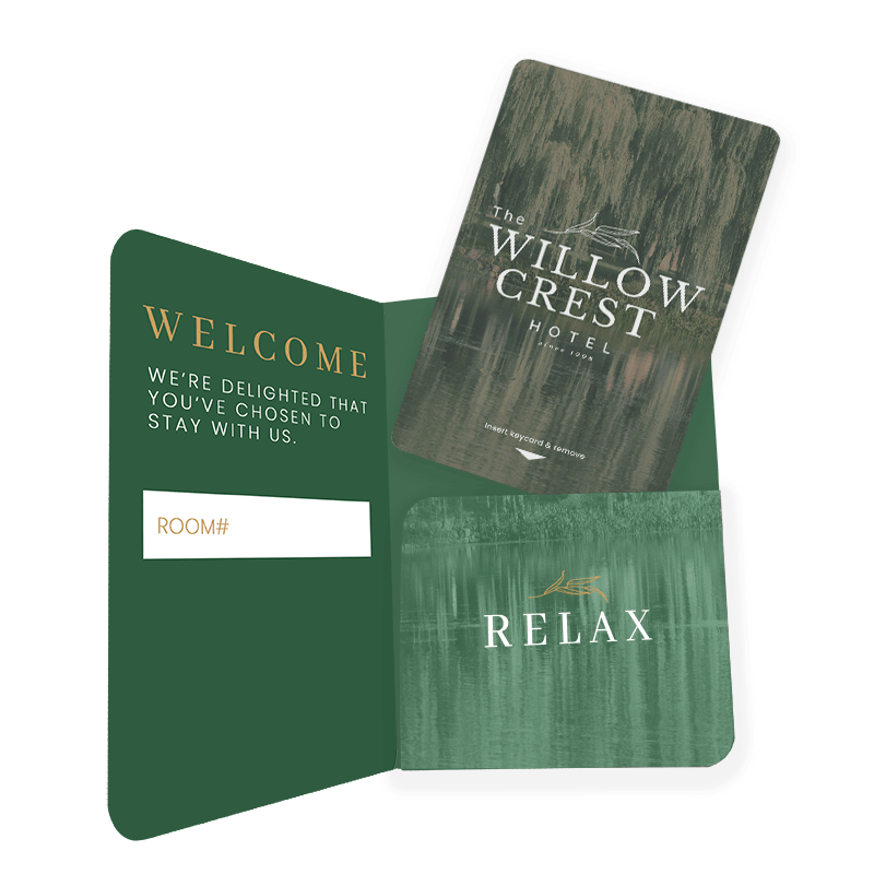 Mini folio card holders help hotels present room keys in an organized, intentional format that supports a calm and efficient check-in experience. By keeping key cards neatly contained and easy to distribute, they help reduce front desk clutter and maintain consistent presentation, even during busy arrival periods.